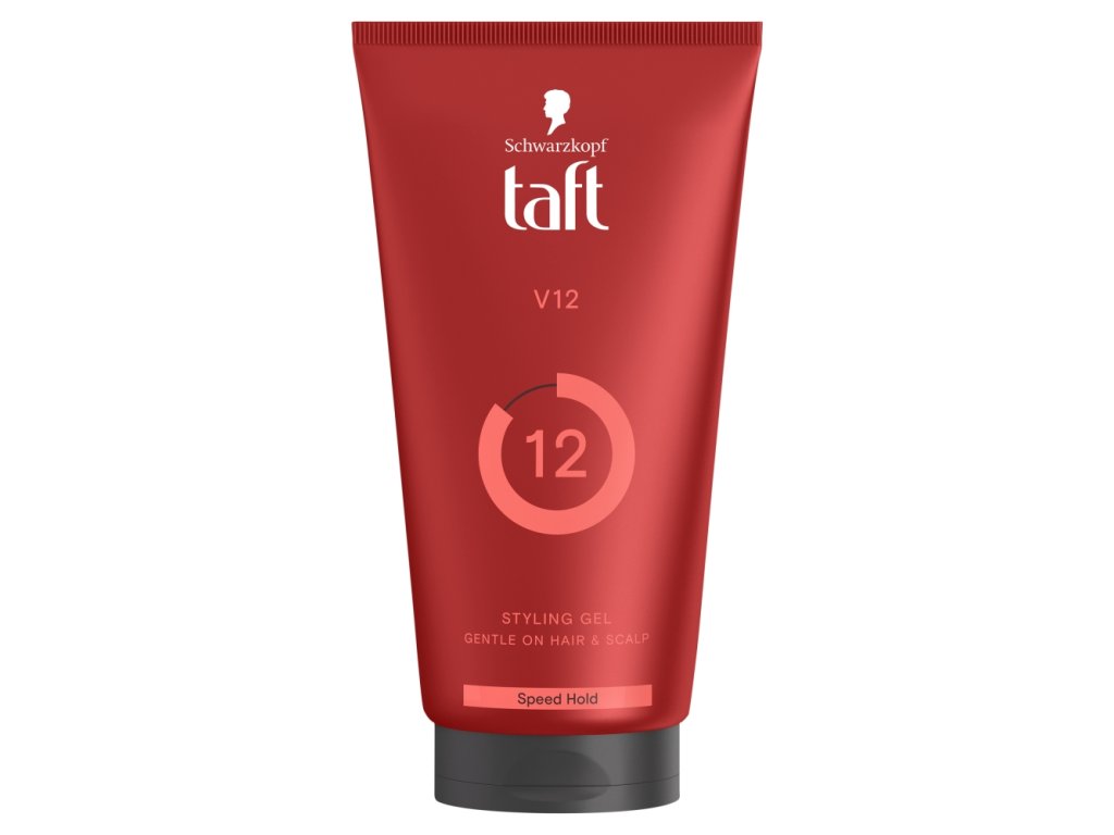 Taft V12 Styling-Gel mit schnelltrocknender Formel und Speed-Hold-Technologie.