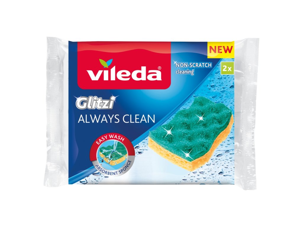 - Die Packung enthält zwei VILEDA Glitzi Always Clean Schwämme.