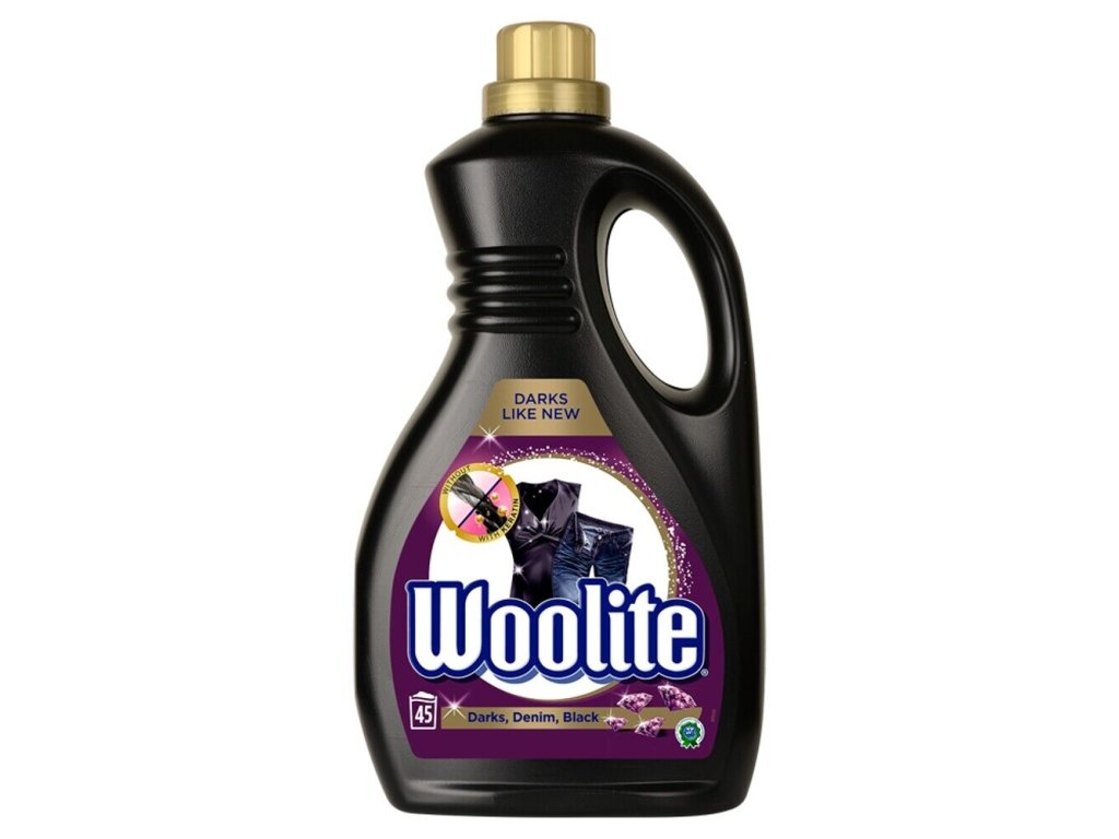 Das flüssige Waschmittel Woolite Darks, Black & Denim für dunkle und schwarze Wäsche und Denim belebt die Farben und hilft, vor Verblassen und Flecken zu schützen.